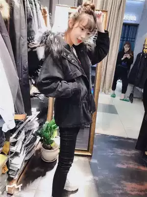 2021 autumn and winter New Fashion Pike clothes hooded real wool collar cotton clothes plus velvet thick denim coat women's waist tide