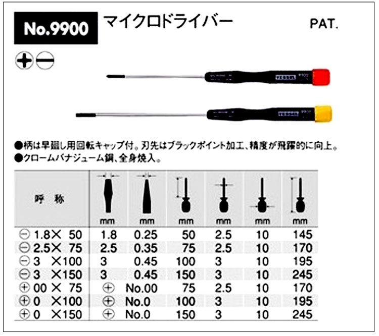Japan imports VESSEL Wisel 9900 cross for a precise screwdriver notebook phone camera driver