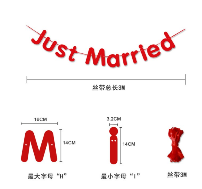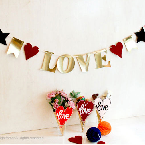 Letter pull flag wedding room decorated lover pendant wedding decoration latte wedding supplies