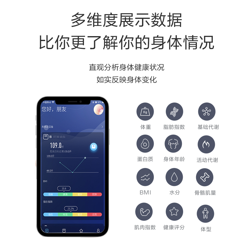 SENSSUN precision body fat scale scale intelligent APP electronic scale ITO measure fat female dormitory rechargeable body fat scale