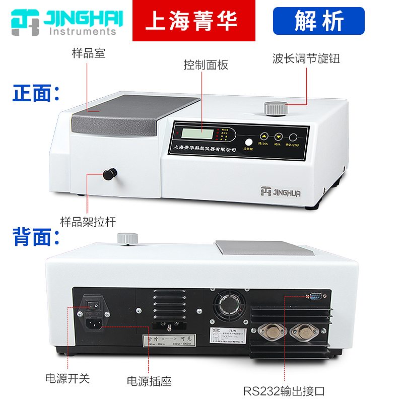 Shanghai Jinghua UV visible spectrophotometer 722n laboratory spectrum analyzer 721 type 754PC software
