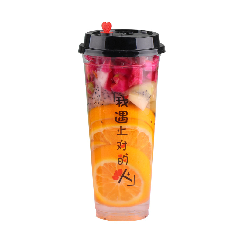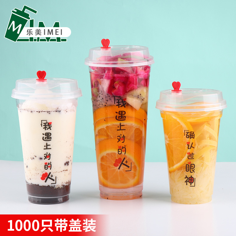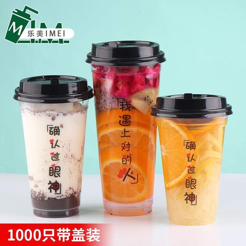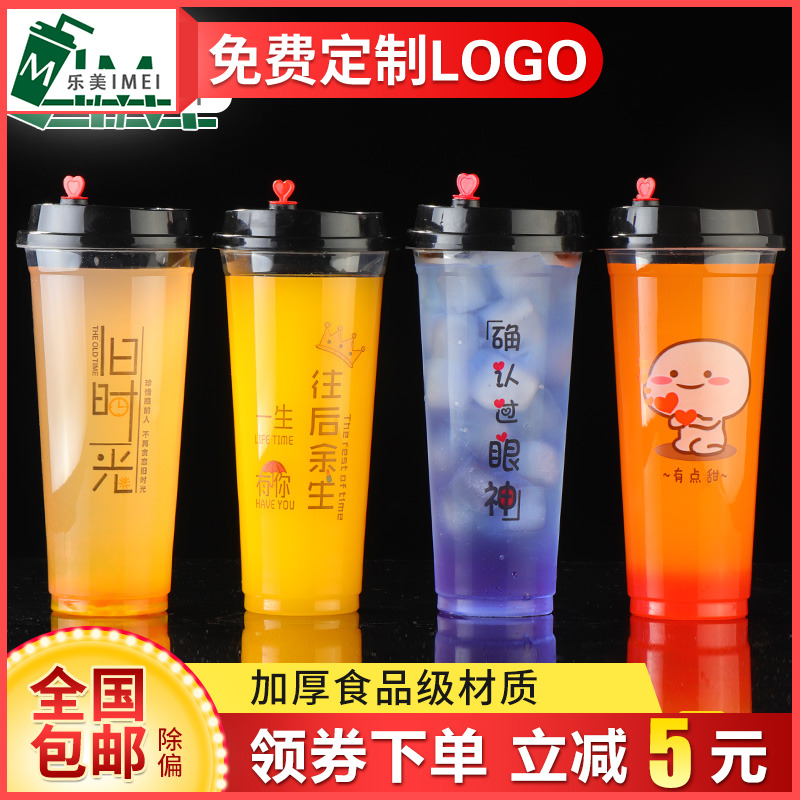 Net red 90 caliber disposable plastic milk tea cup with lid 500ml juice beverage delivery package Cup customization