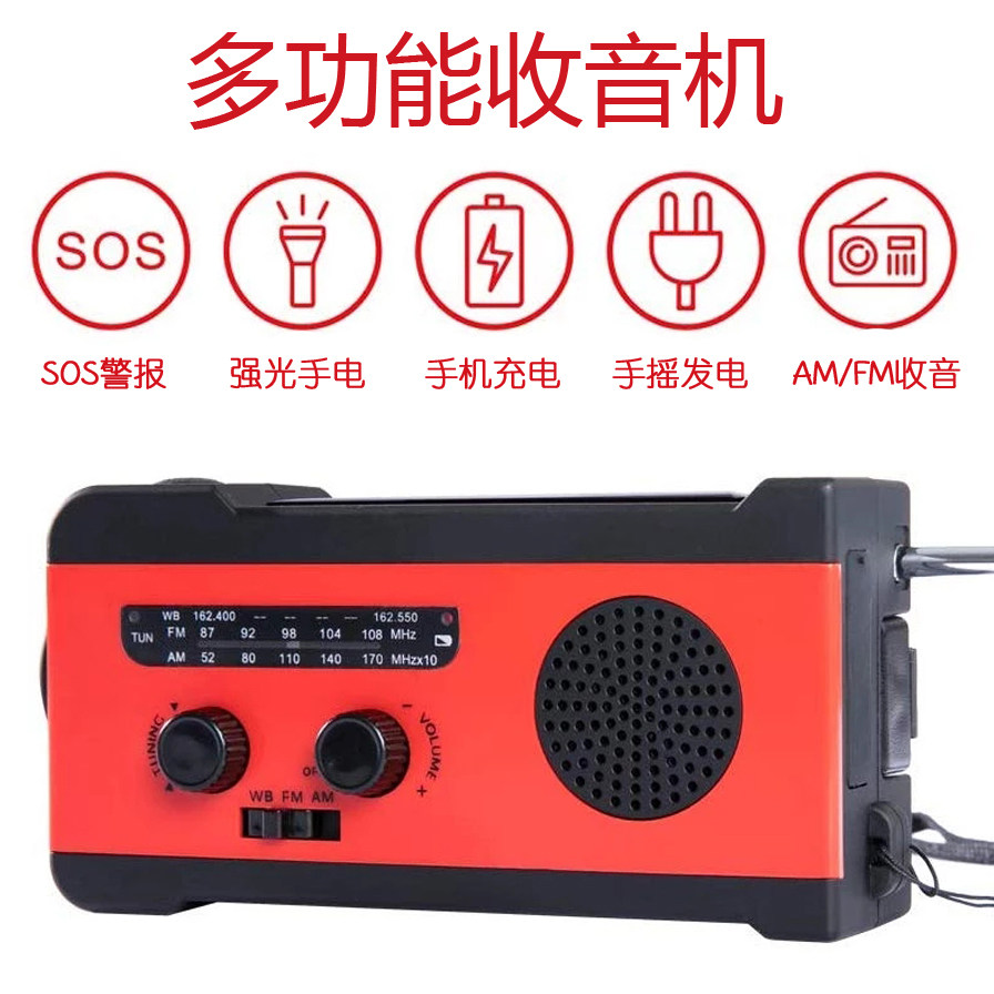 Multifunctional Emergency Disaster Prevention Earthquake Am FM Solar Radio Hand Crank Mobile Phone Charging Flashlight SOS Alert