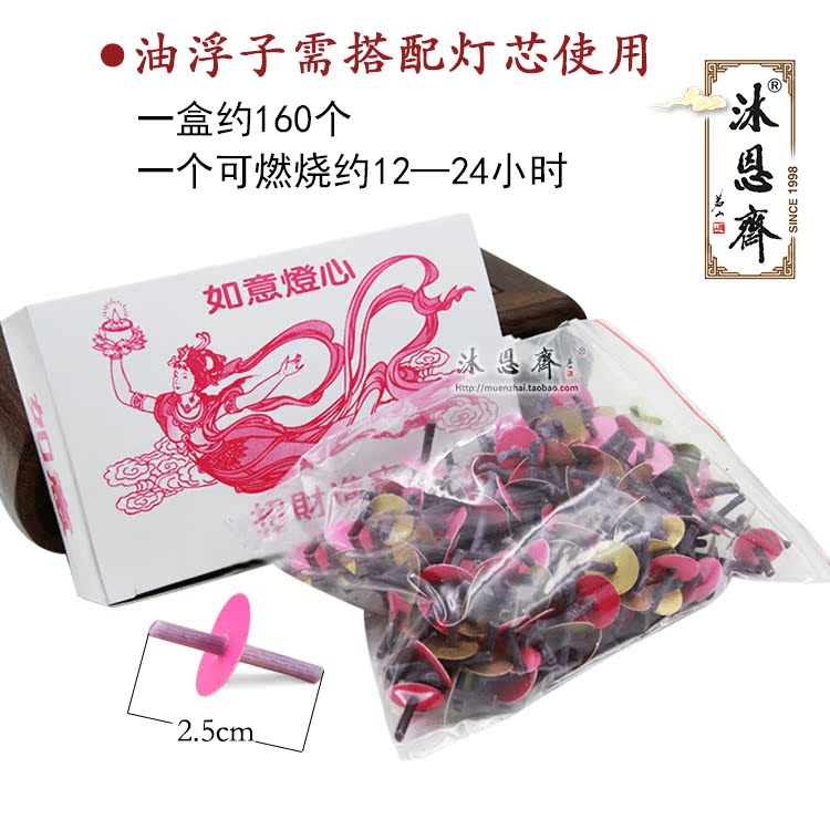 1 small oil float (1 wick sent) 1 large oil float (1 wick sent) 100 small oil floats 20 large oil floats 1 box of Ruyi wicks