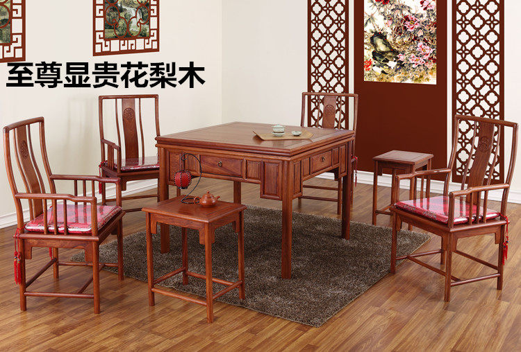 Fully automatic solid wood mahjong machine table two with multifunctional mahjong table Four mouth muted Chinese style home roller coaster