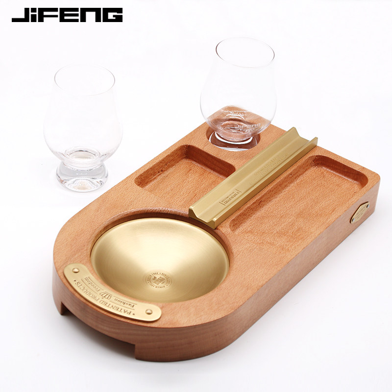 Cigar ashtray monsoon jifeng cigar ashtray solid wood fashion business with red wine glass ashtray set