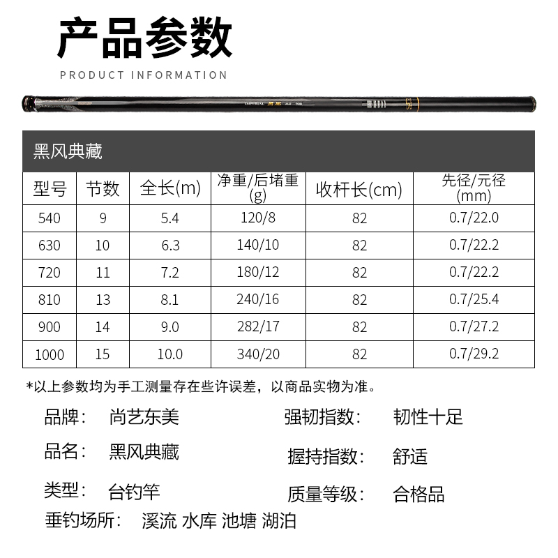 Shangyi Dongmei Black Wind Collection Short Section Stream Rod Fishing Rod Hand Rod 8 10 Meters Lightweight Hard Fishing Rod Platform Fishing Rod