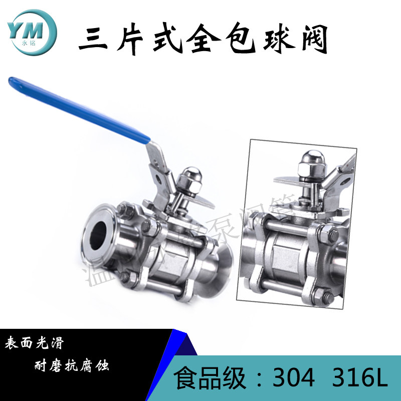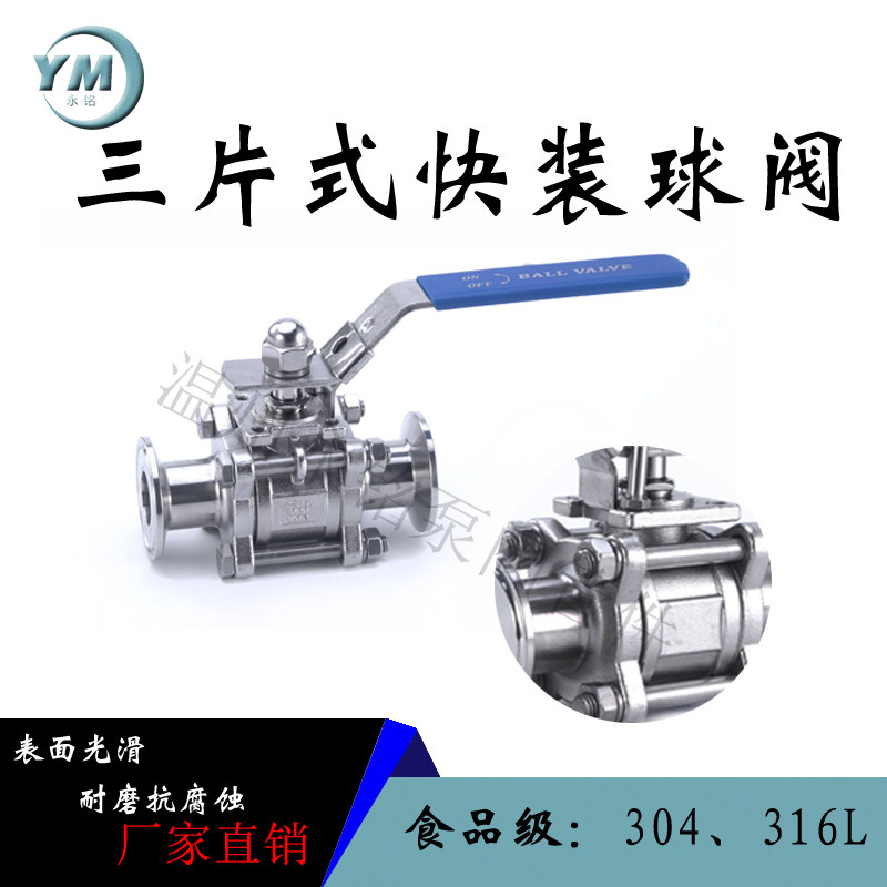 Three-piece ball valve 304 stainless steel sanitary grade all-inclusive three-piece chuck ball valve 316 fast installation corrosion-resistant explosion-proof
