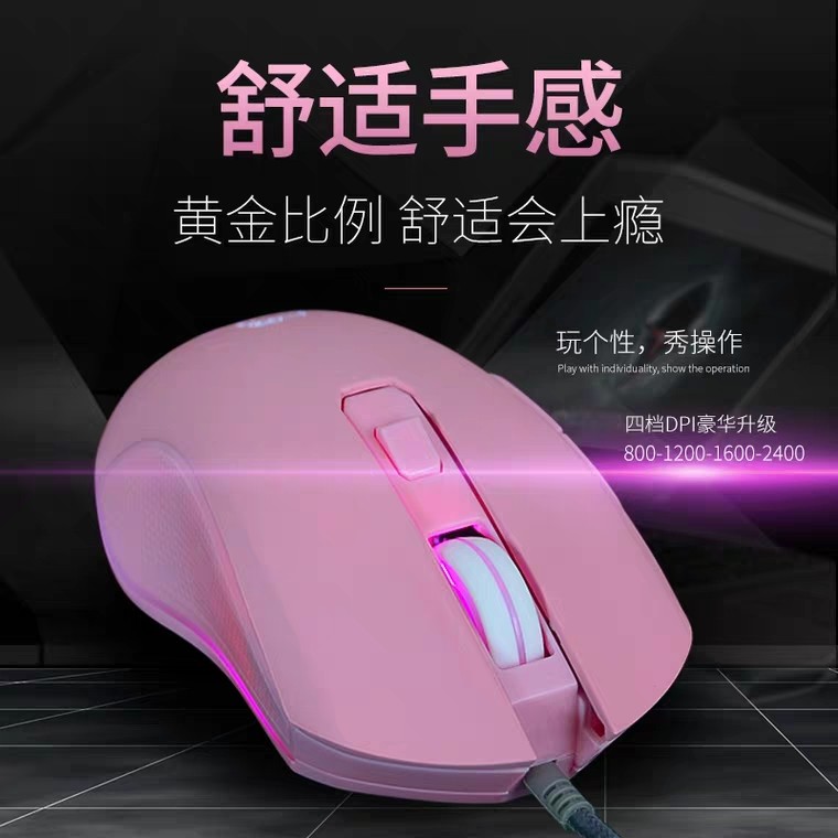 Computer scrub wired mouse beautiful girl glowing game e-sports mute girl cute pink cf eat chicken LOL
