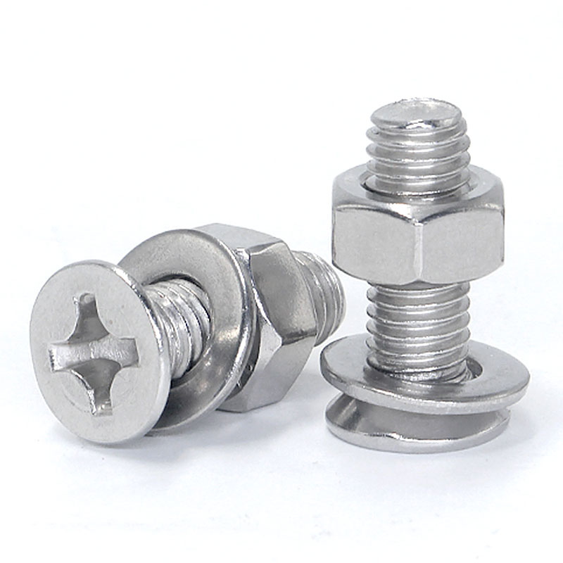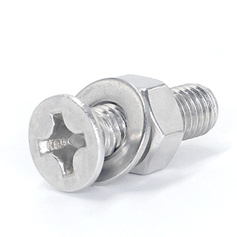 Flat head cross screw nut suit large full M3M4M5M6M8 stainless steel 304 sunk head screws 3 combined bolts