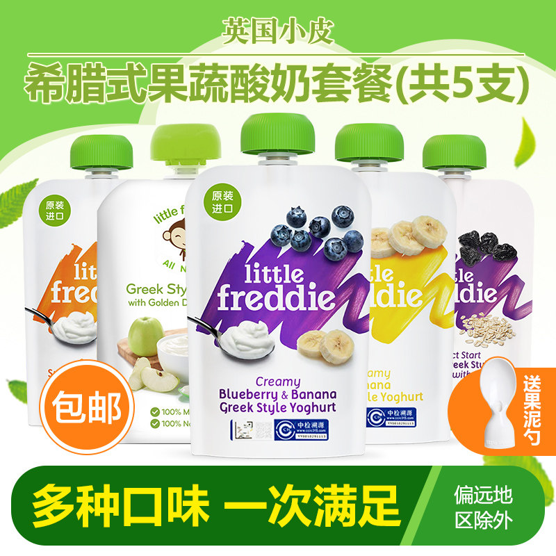 5 bags of British small leather yogurt LittleFreddie original imported prune cherry blueberry bag filled with pureed vegetable puree