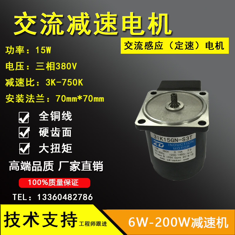 Zhongda 380V 15W AC gear reduction motor 3IK15GN-S3T with junction box teaching equipment dedicated