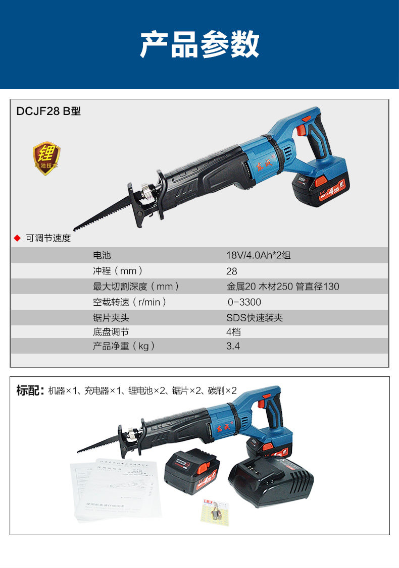 DCJF28B bare skin (no battery charger saw blade) DCJF28B bare skin (band saw blade three) DCJF28B special package (send three saw blade non-original plastic box