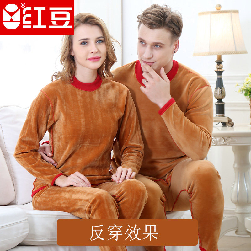 Red bean male and female mid-and-half-high collar red Ben-year plus suede thickened mid-age increased code fever sweatpants
