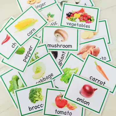 English card waterproof Enlightenment flash card vegetables 20 kindergarten children's word card early education English map teaching aids