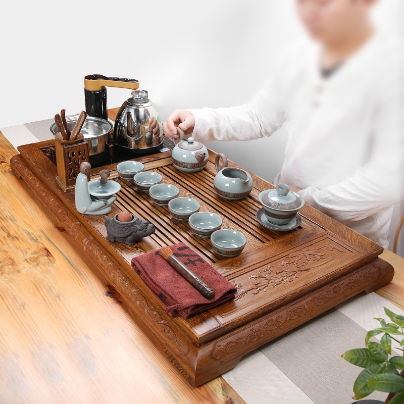 Tea Tray Solid Wood Chicken Wings Whole Set Tea Set Group Home minimalist Tea Sea Four-in-one Belt induction cookware fully automatic