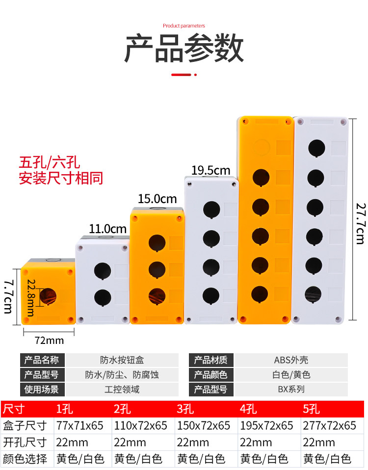 Button box Switch control box Single hole 1 hole 2 hole 3 hole 4 hole 5 hole 6 hole Three hole emergency stop 22mm one two three