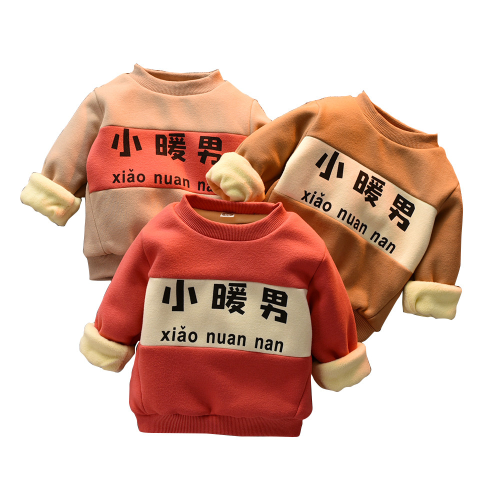 Boy and girl thick T-shirt velvet thickened 2020 new winter foreign school warm baby coat winter children's top