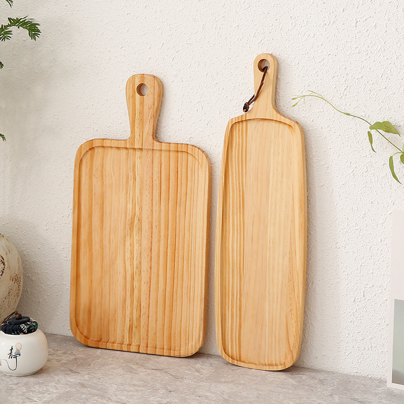 Pine Western Plates Handle-type wooden steak board dining plates Rectangular non-slip pizza bread trays