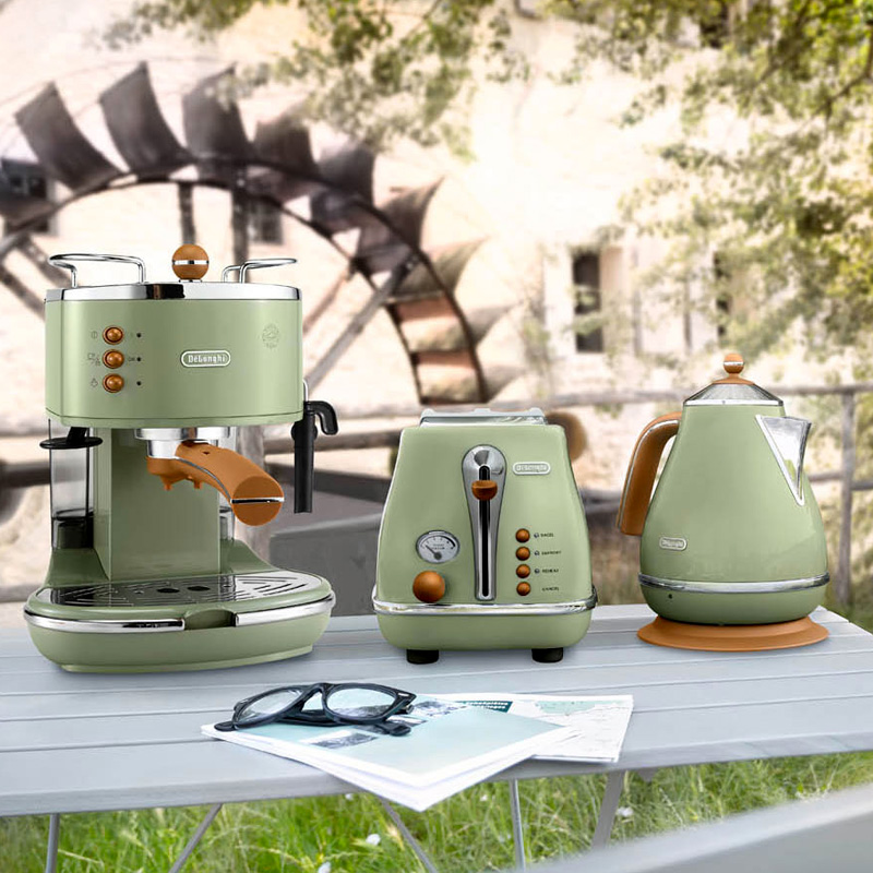 Delonghi Retro Series 3 Piece ECO310 Semi Automatic Coffee Machine Electric Kettle Toaster Home Use