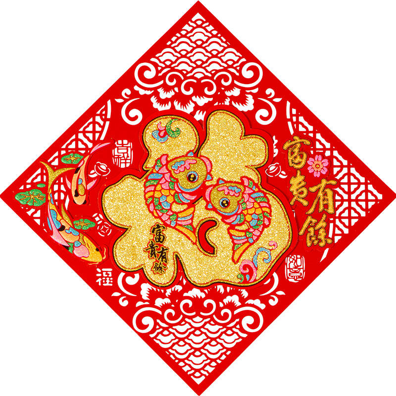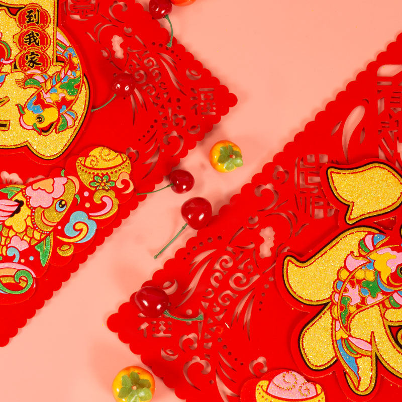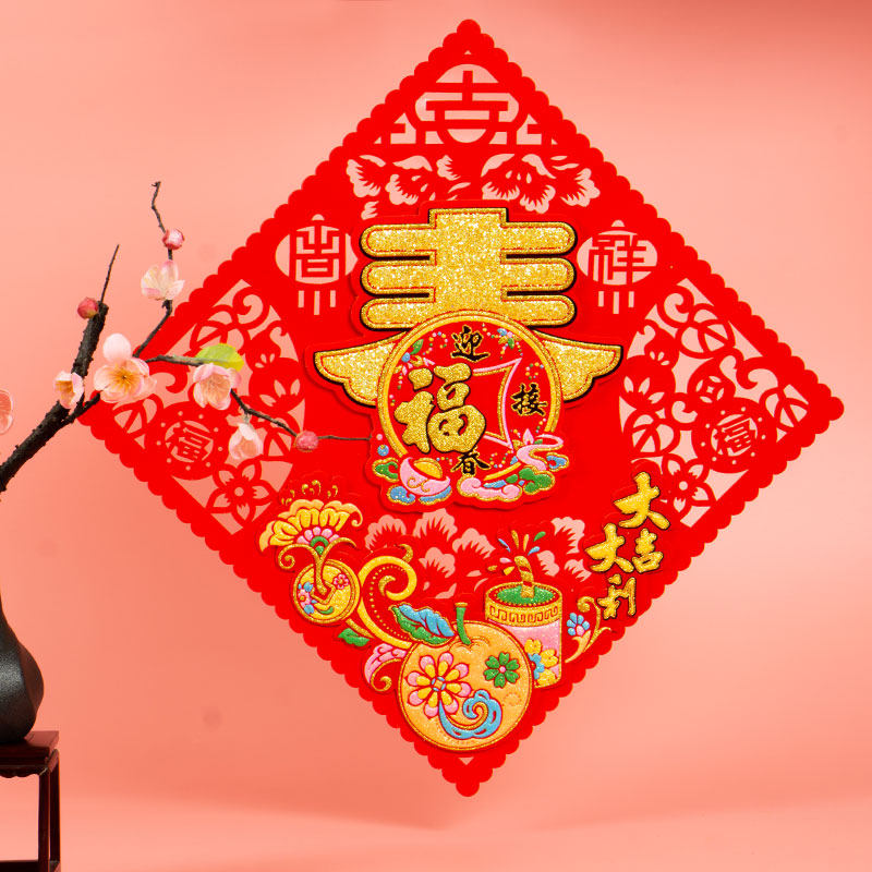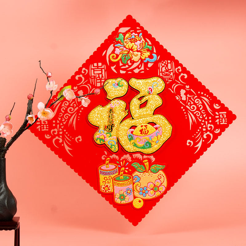 Three-dimensional felt lucky character door stickers paper-cut window flower lucky character stickers 2022 the Year of the Tiger New Year New Year housewarming Spring Festival wall stickers lucky