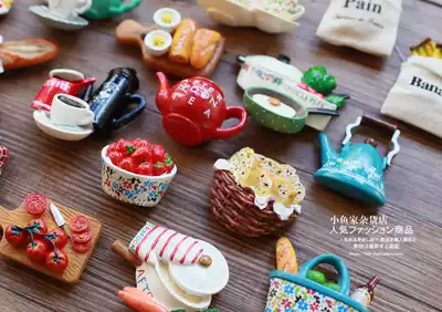 Basket bread(old style)Rectangular cookies Round cookies Pasta pot chopping board Tomato vegetable egg white pot Red and white gloves Carrot chopping board Bread Green teapot cover Blue kettle flower picnic basket Red English