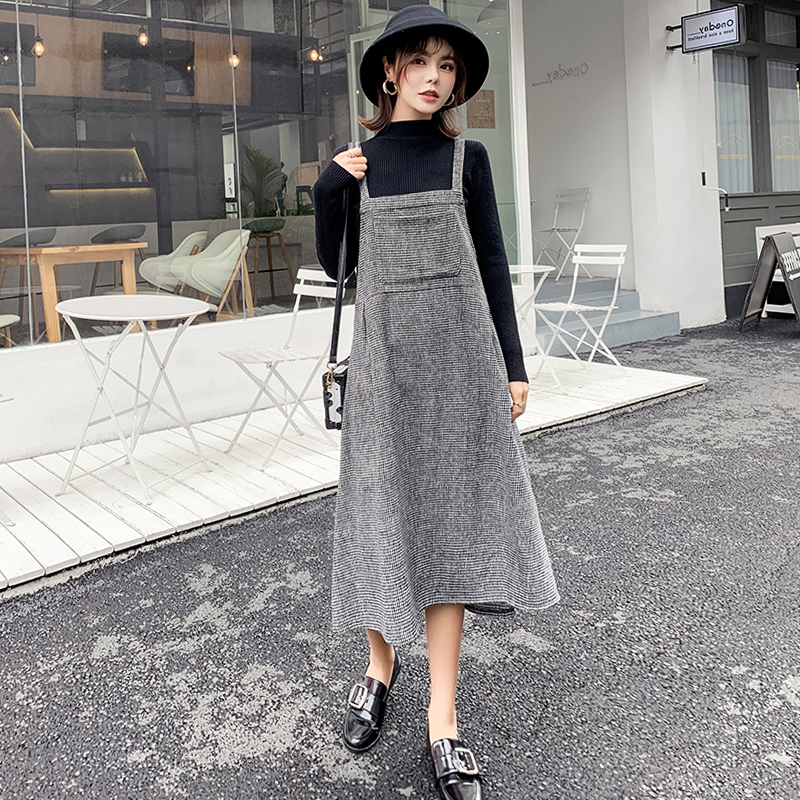 Pregnant woman Libra dress Autumn dress 2023 new suit autumn and winter medium long pregnant woman sweater braces two sets of damp mother-Taobao