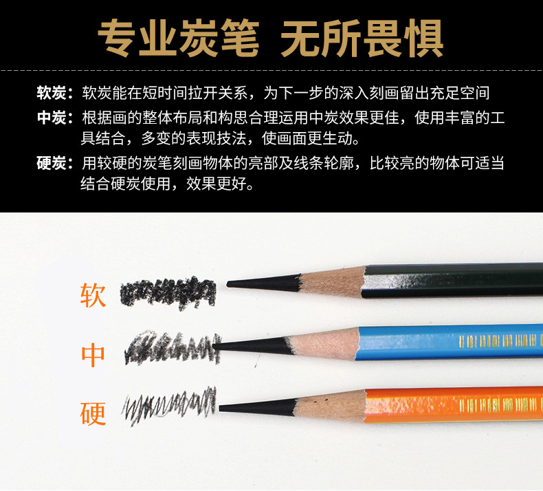 Joint Exam champion sketch charcoal 12 sets mixed full suit black sketch charcoal students with Art special carbon pen Nionet soft neutral hard Wicker Marley charcoal 2 than 4B6B8B14B
