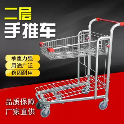 New mute shopping cart Supermarket convenience store push cart shopping cart Commercial household adult double-layer shopping cart