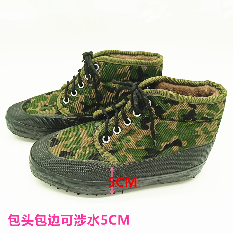 3537 plus velvet padded release shoes men's high winter labor protection site cotton shoes camouflage rubber shoes wear-resistant site