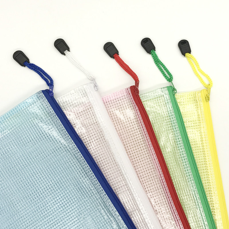 File Bag Transparent A4 Mesh Pull Chain Bag A3 Drawing Paper Cashier Bag Work Display Bag B4 Exam Paper Information Stall Case Bag A5 Stationery Bag a6 Bill Thickened Student Waterproof Plastic Big Custom Print