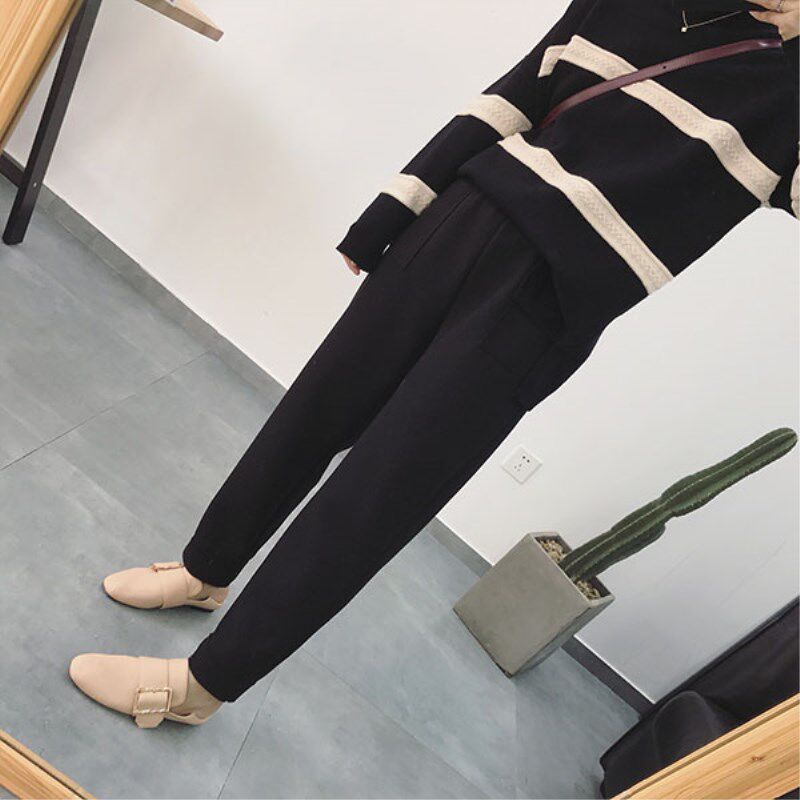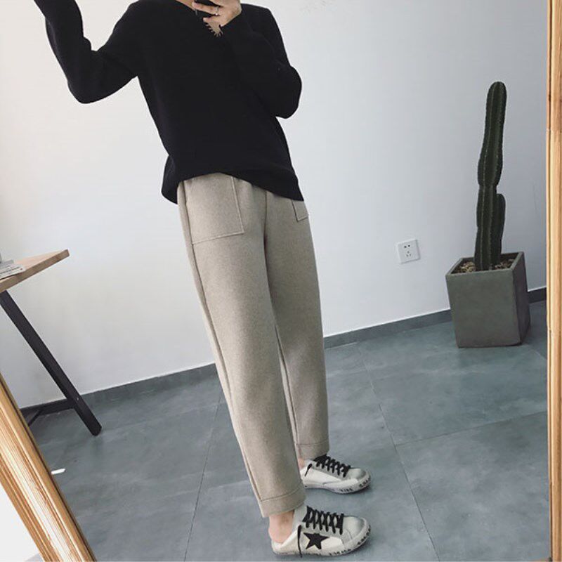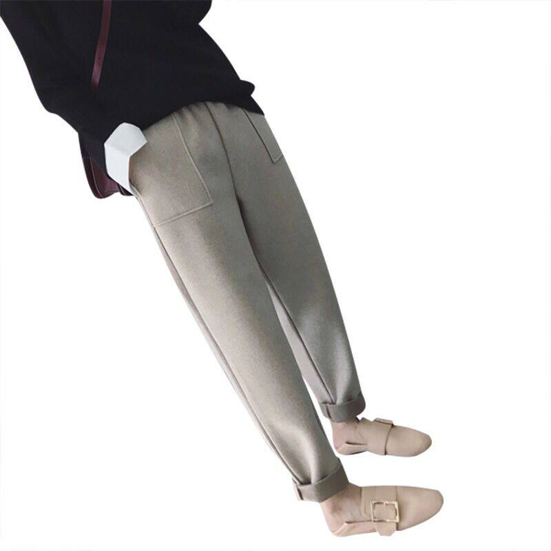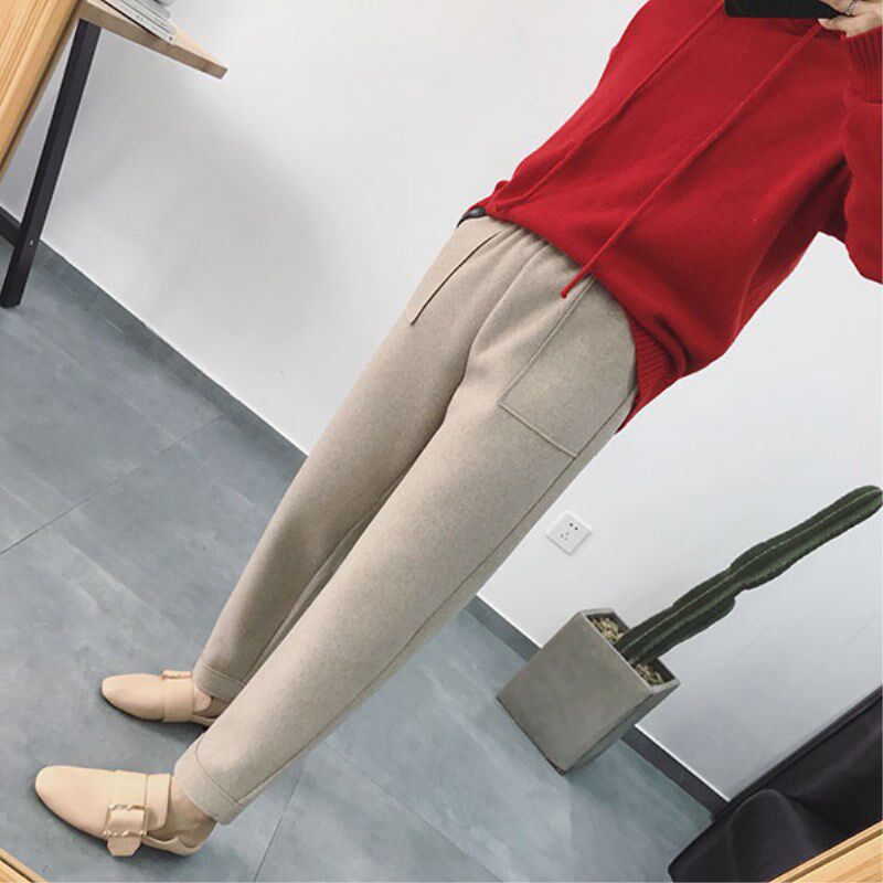 European station woolen pants women's autumn and winter plus velvet Korean version large size loose casual cigarette harem pants new radish pants