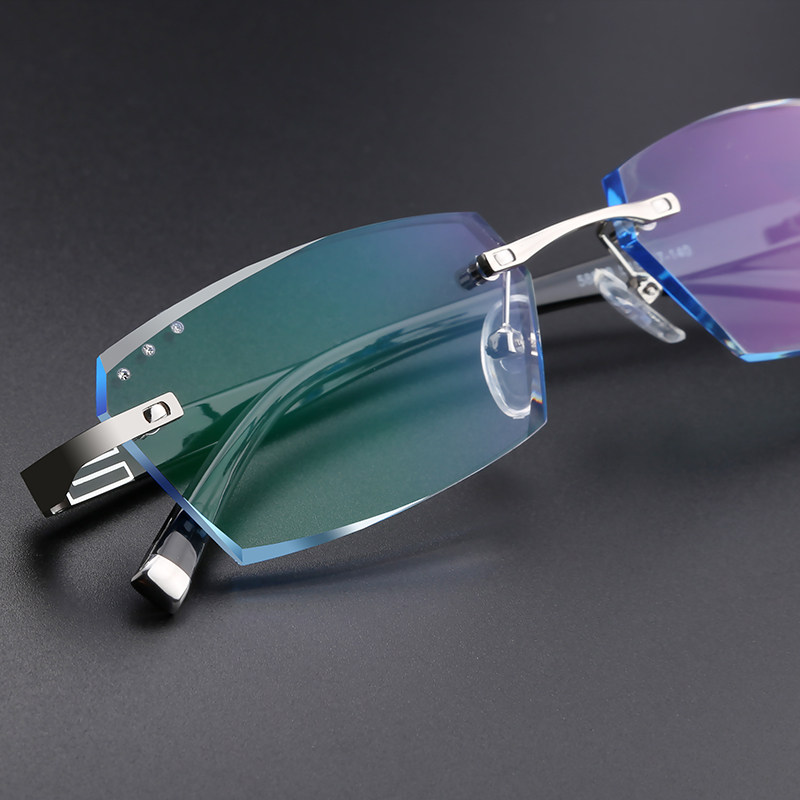 Matching frame-free spectacle frame diamond cut edge glasses finished myopia eye frames Men's discolored eyes frame flat light radiation