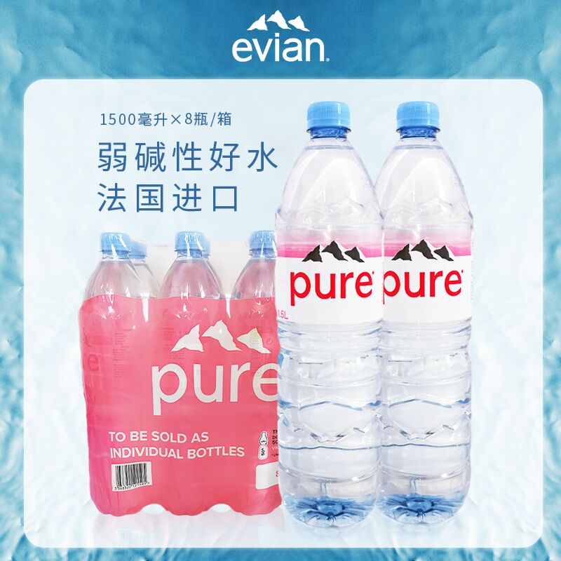 French imports evianevian mineral spring drinking water 1 5L* 8 bottles plastic bottle large bottle of family affordable