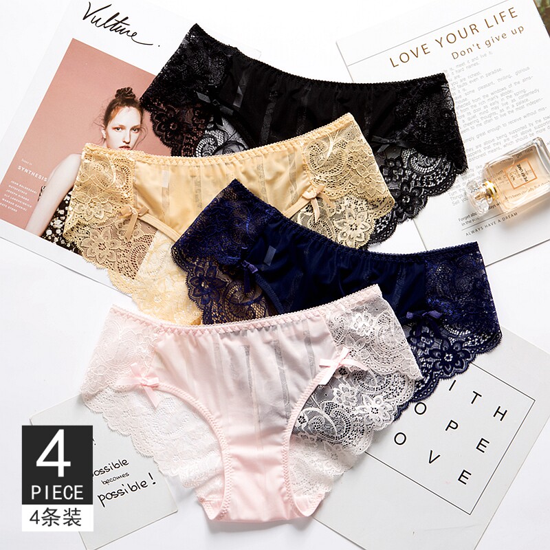 4 sexy incognito panties Women lace girl low waist hot ultra-thin hollow breathable cotton crotch briefs