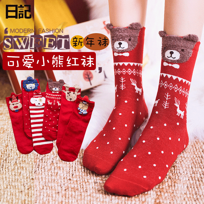 Socks Women's life year step on the villain cotton socks socks Autumn and winter men and women big red wedding red four seasons cotton socks