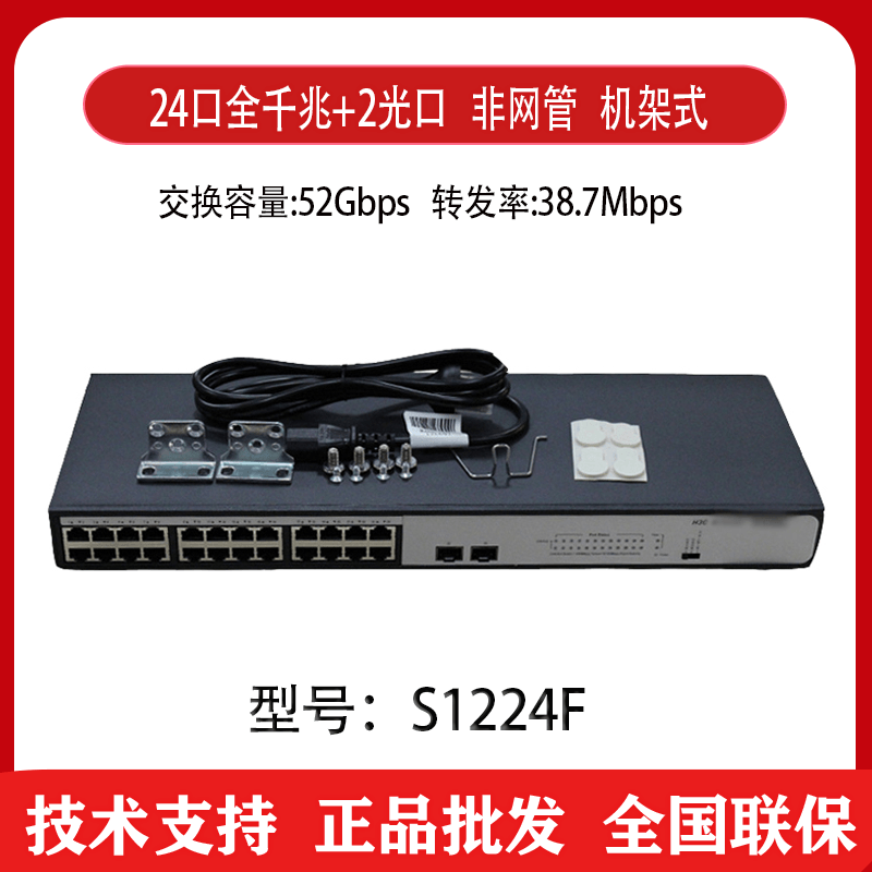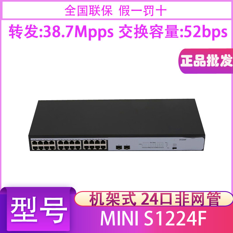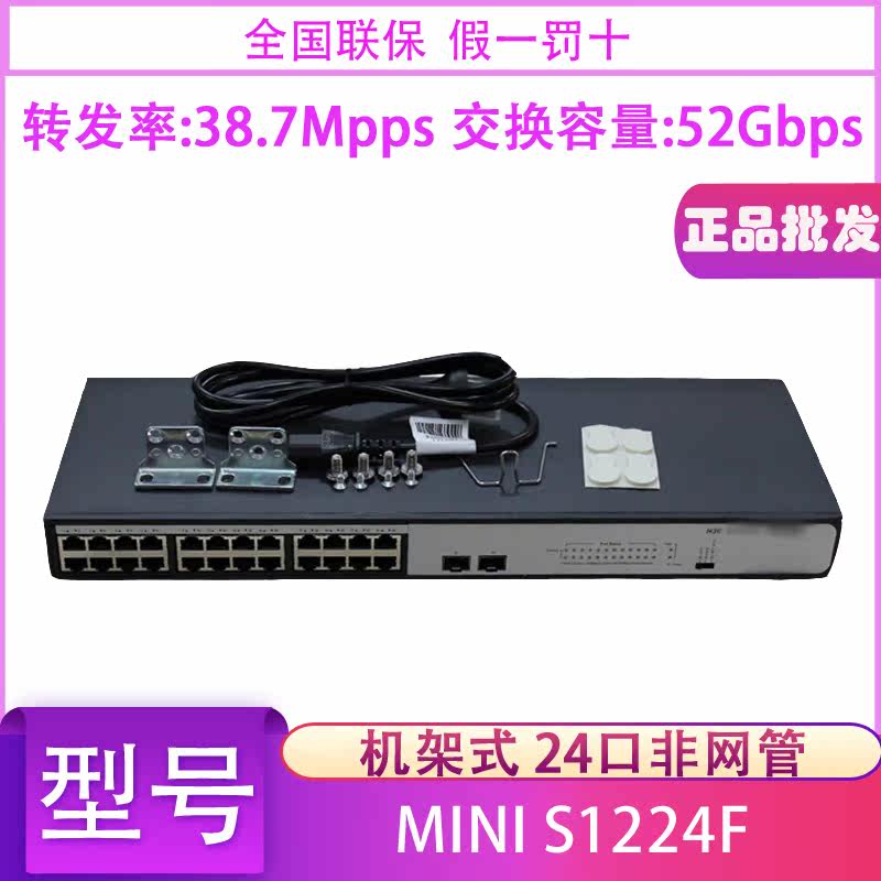 Hua three H3C MINI S1224F 24-port full Gigabit switch 2SFP optical port plug and play can be rack