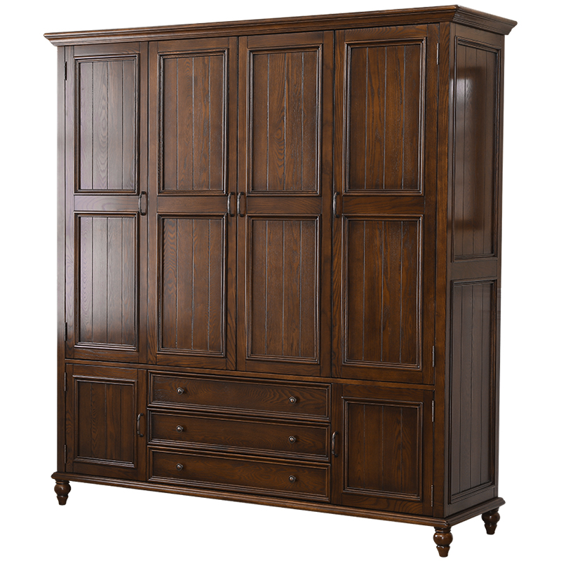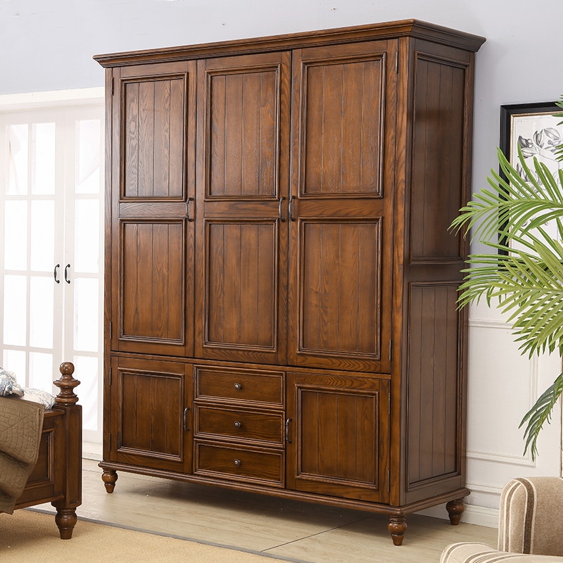 American wardrobe Solid wood small household simple storage cabinet Bedroom flat open adult wardrobe 2 3 doors 4 doors Children's wardrobe