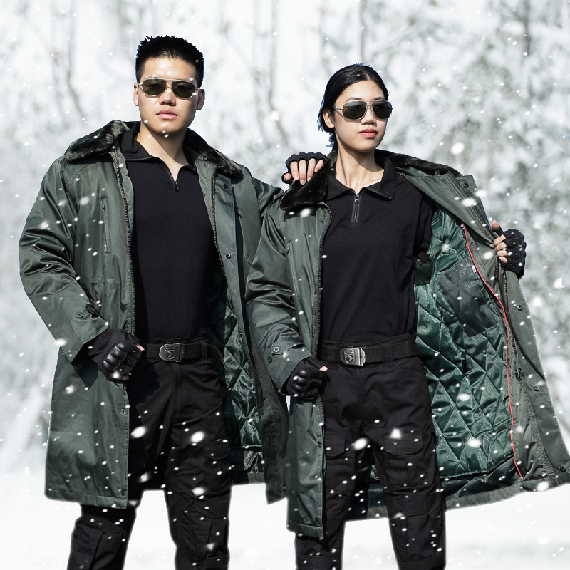 Green cotton big coat black cotton coat (with cotton gloves preferentially shipped) black big coat cotton pants