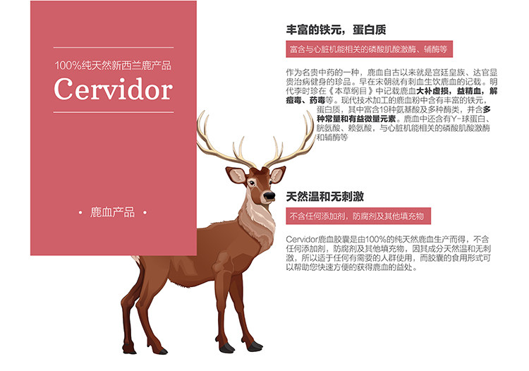 New Zealand Cervidor Red Deer Blood Natural Iron-free Rich Protein 60 capsules