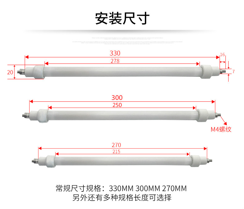 Zawa Wei disinfection cabinet Heating tube far infrared lamp tube quartz heating tube electric heating tube 220v 300W400W
