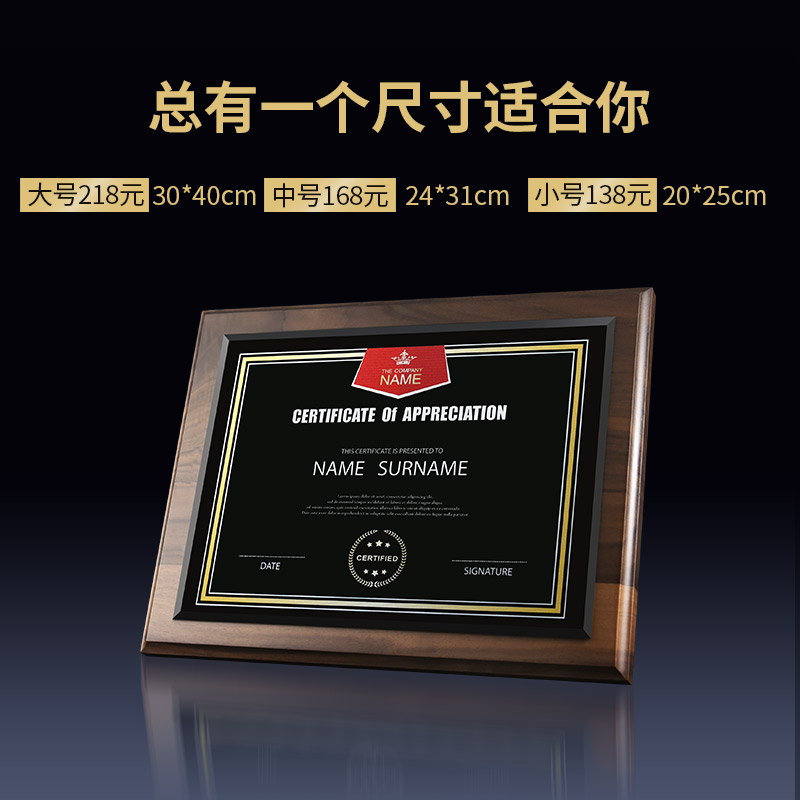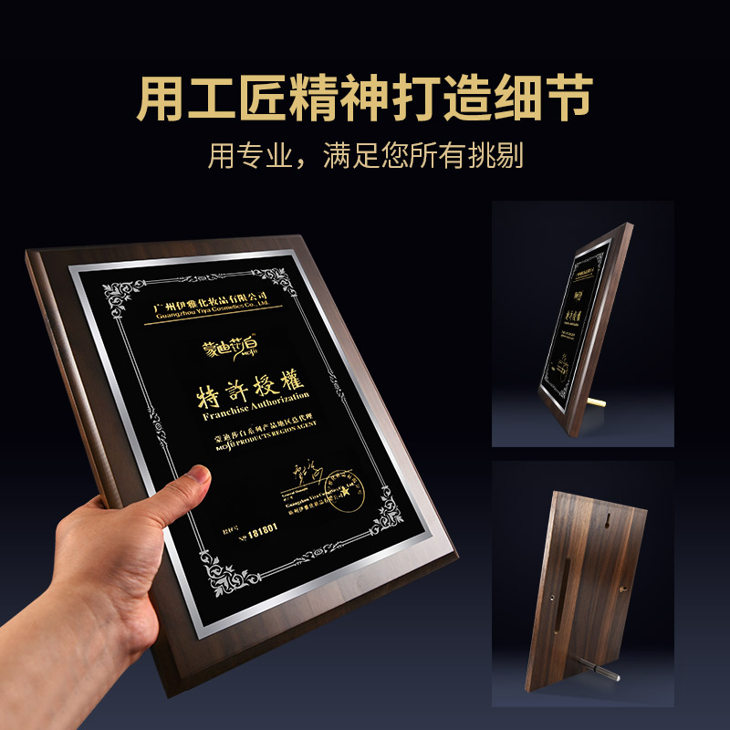Medal Custom Authorization Card Wood Gold Leaf Solid Wood Honours Certificate Hire Book Crystal Franchise Medal Trophy Plaque