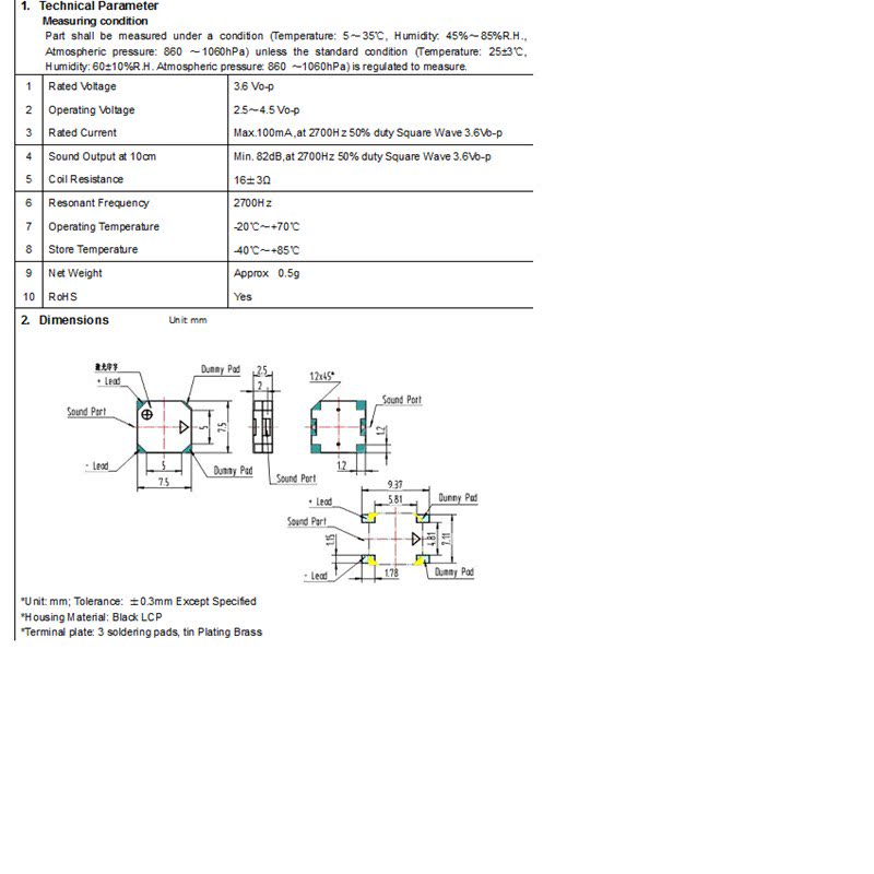 HYG7525A patch buzzer passive integrated electromagnetic frequency 2731 buzzer 16 16 42 Euro 16R