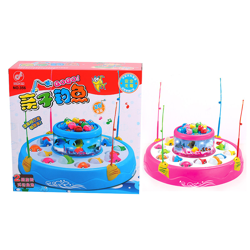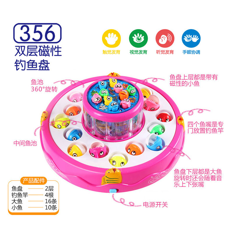 Children's fishing toys Electric rotating music Large double-layer fishing plate Baby puzzle early education Parent-child interaction
