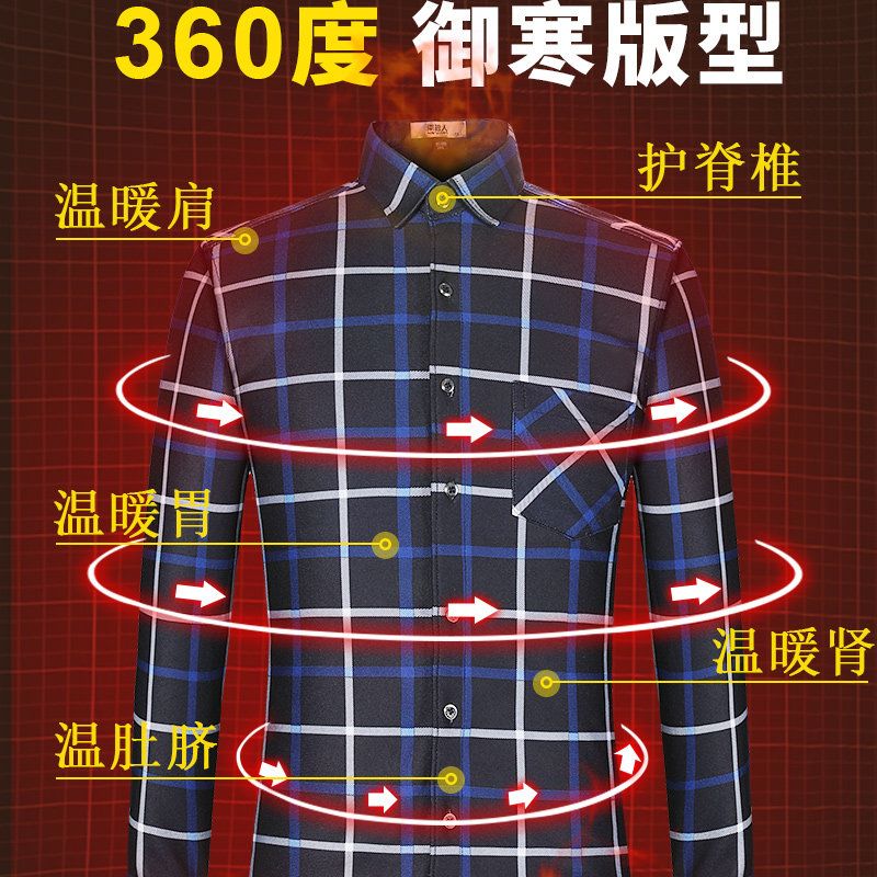 South Pole Winter Warmth Shirt Male Long Sleeve Middle-aged Men Casual Linen Clothing Plus Suede Thickened Dad Loaded with Inch Shirt Man-Taobao