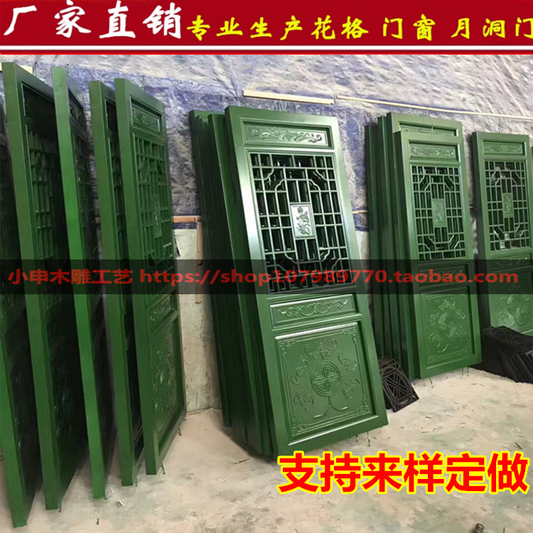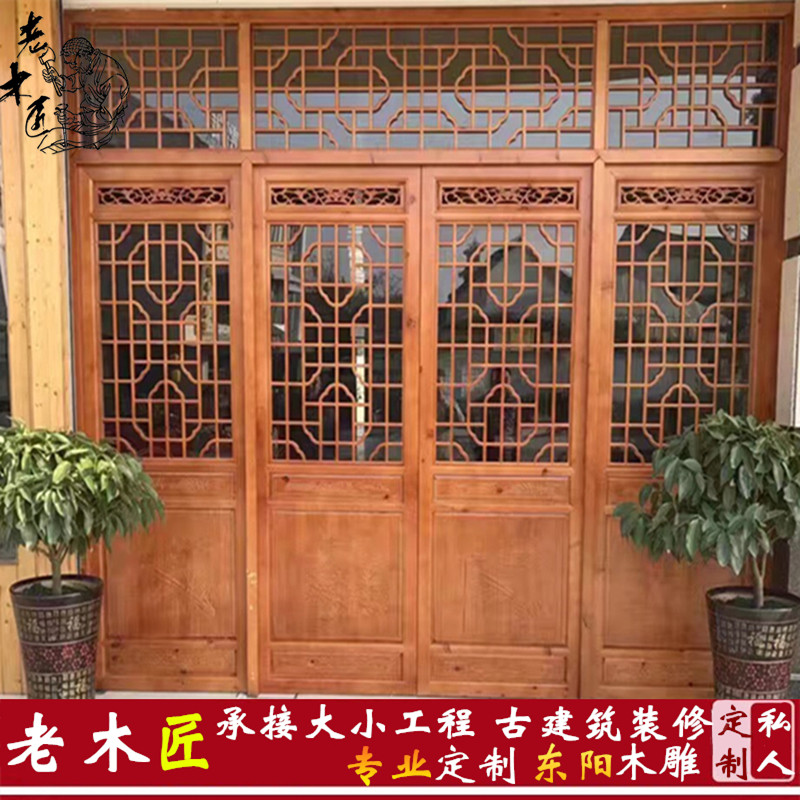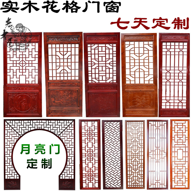 Dongyang wood carving solid wood Chinese-style lattice TV background wall hollow moon hole door hanging ceiling porch partition antique doors and windows