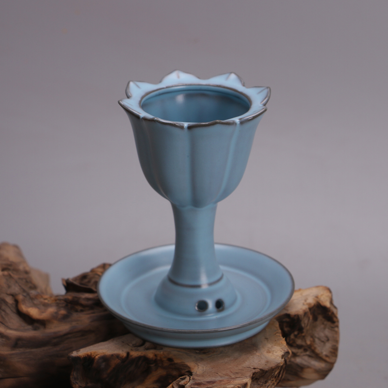 Song Ru Kiln Blue Glaze Hollowed-out Lotus Stove Full Glazed Branch Imitation of the Imperial Song Palace Ancient Porcelain Ware Ancient and Antique Collection