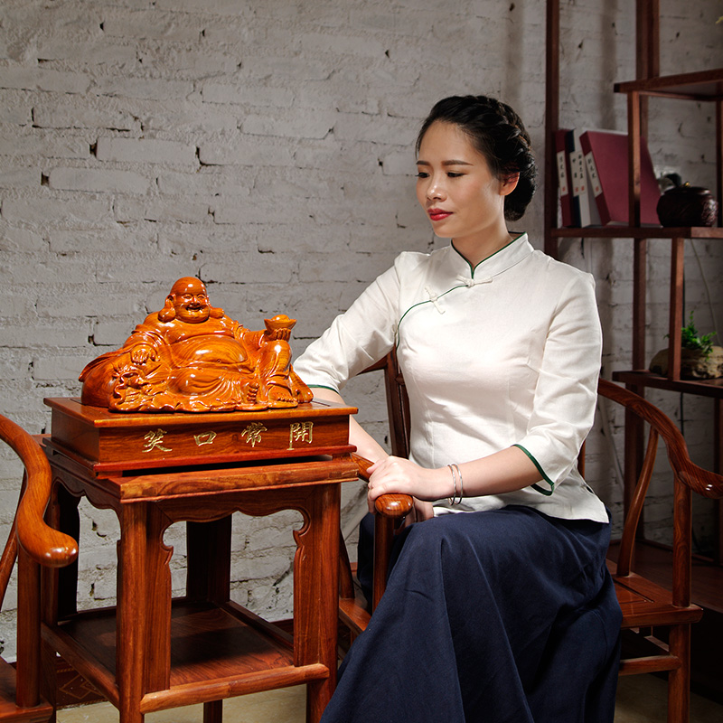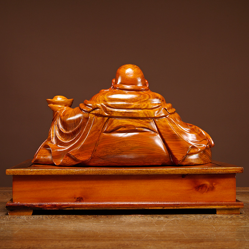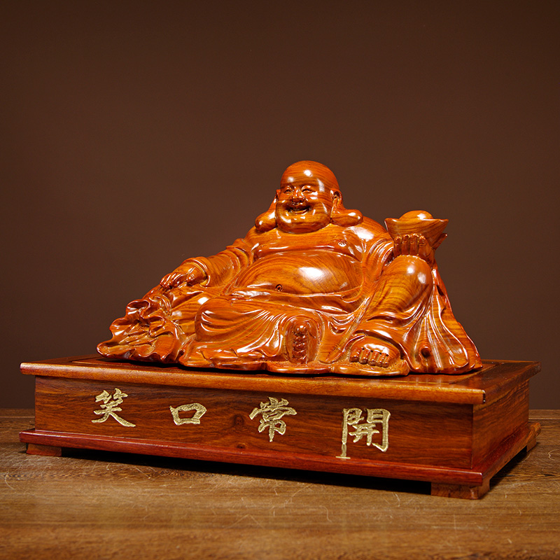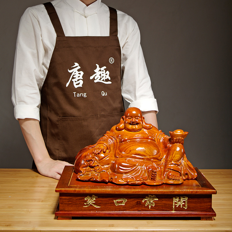 Tangy wood sculpted Millver like a swinging piece cloth bag sitting with a smile Buddha solid wood sculpted home living room ornament red wood handicraft