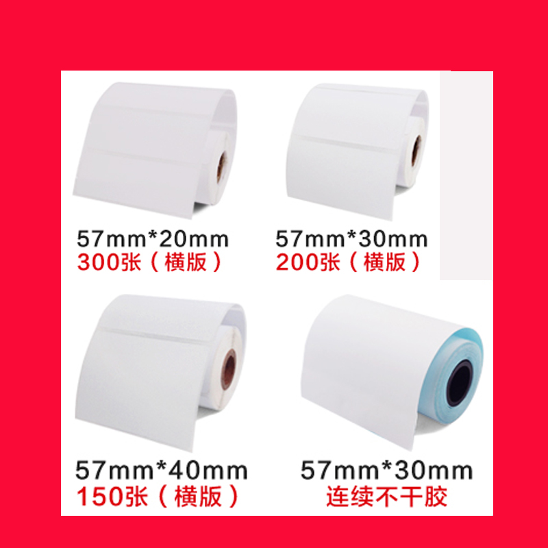 Horizontal version 57*20mm-300 sheets 10 rolls of horizontal version 57*30mm-200 sheets 10 rolls of horizontal version 57*40mm-150 sheets 10 rolls of 55*