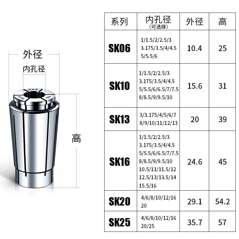 High speed shank clamping head sk06 10 13 13 20 20 25 cylinder clip holder gsk high precision spring hairpin SK shivering